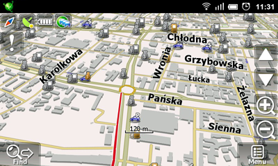 Sometimes there is a need to view route from different angles. Navigation map Navitel now can be rotated also in horizontal plane! Just move your finger at the lower part of display between buttons “Find” and “Menu”, at the scale and map will be rotated!