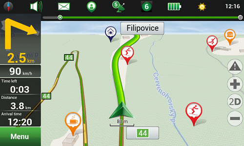 The “Alps”, “Caucasus”, “Carpathians” and “Pyrenees” navigation map packages contain all necessary information, which may be necessary for a tourist during a journey! Highly detailed plans of cities, towns and other settlements include a wide range of points of interest: hotels, restaurants, cafes and bars, sites of tourist attraction, shops, petrol stations and maintenance facilities, hospitals and chemists and many others, which will help you to find your way in a new country and have a great time, and instantaneous route calculation taking into account traffic situation will help to reach the necessary point in the shortest possible time.