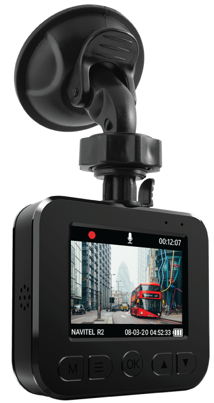 NAVITEL R2 will be your reliable assistant on any road at any time. The Dash Cam records Full HD (1920x1080) video at 30 frames per second, and a panoramic 140° angle allows recording of a wide portion of the road ahead of a car, including neighboring lanes and the roadside.