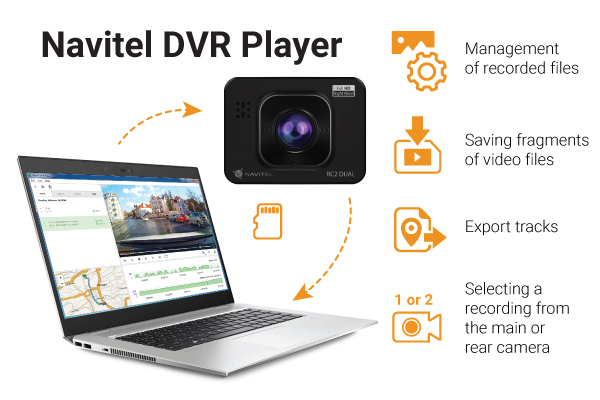 NAVITEL RC2 DUAL is a new modern Full HD compact dashcam with a built in screen, 1080p resolution and additional 720p rear view camera.