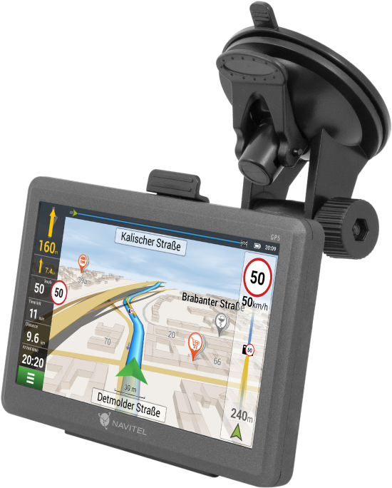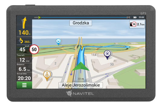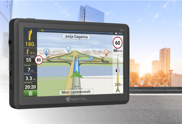The device can be easily mounted in a car with the help of NAVITEL® windscreen holder. A car charger and stylus are also included in the package.